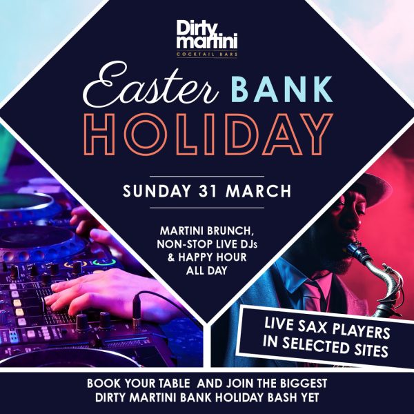Get ready to confess your sins with the most incredible Easter weekend holiday blow out Dirty Martini has ever seen. We're throwing Martini Brunches ALL weekend with non-stop DJs and happy hours to boot. PLUS live sax players in Birmingham, Manchester, Covent Garden & Bishopsgate.